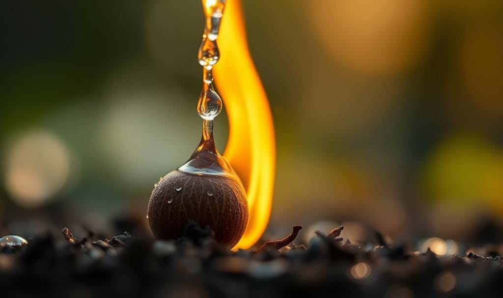 14. Cooling the flaming seeds.